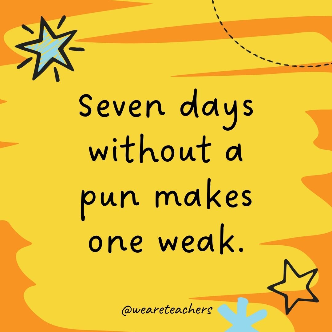 6. Seven days and not using a pun makes one weak.