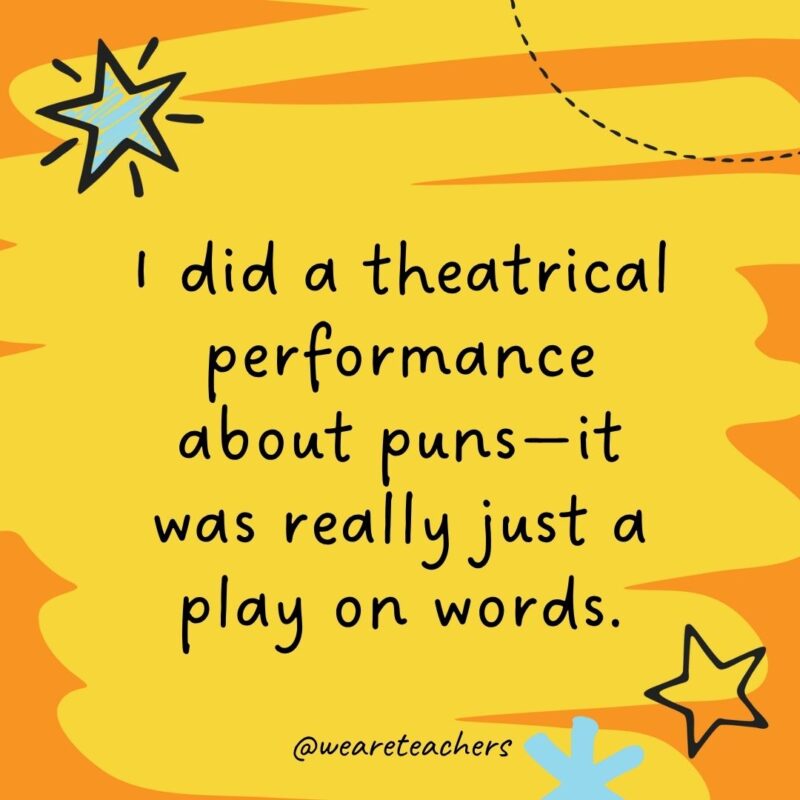 25. I did a theatrical efficiency about puns—it was actually only a play on phrases.
