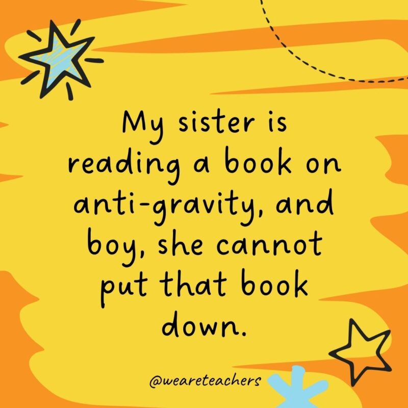 4. My sister is studying a guide on anti-gravity, and boy, she can’t put that guide down.
