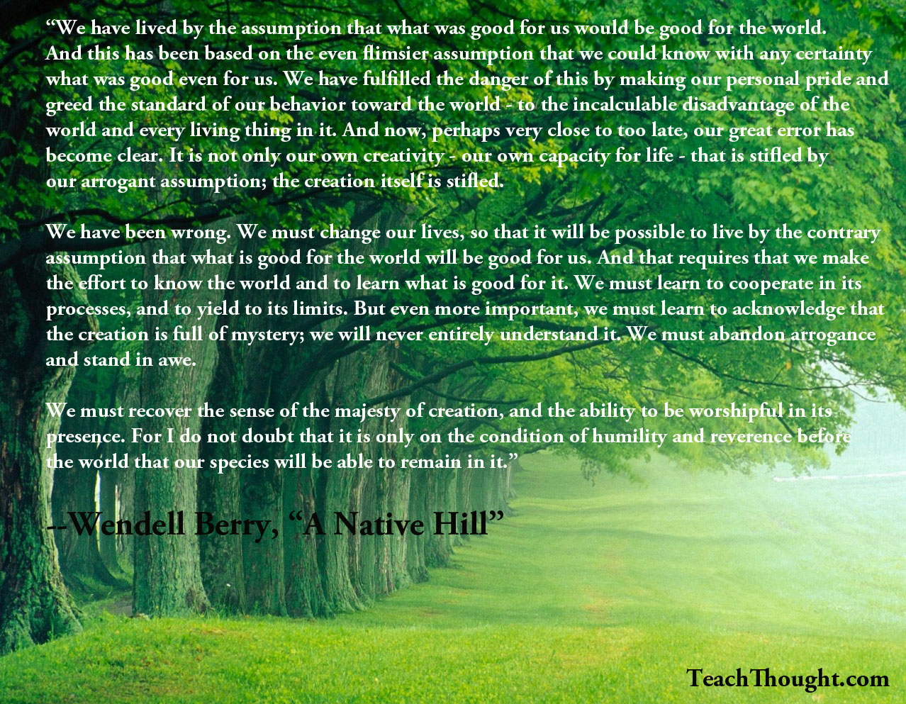 A thoughts that’s correctly observant can be correctly humble. In A Native Hill, Wendell Berry factors to humility and limits. Standing within the face of all that’s unknown can both be overwhelming—or illuminating. How wouldn’t it change the educational course of to begin with a tone of humility?