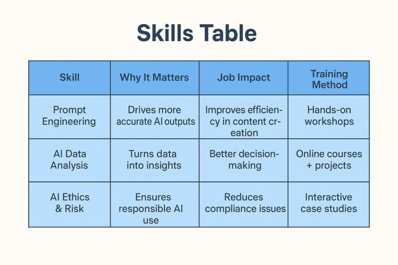 Now, examine the talents required with what your crew really is aware of. It will present you the place the largest gaps are and enable you to prioritize for office AI transformation. Give attention to roles the place a niche may have a excessive enterprise impression. For instance, an L&D specialist who cannot interpret AI studying analytics would possibly decelerate the rollout of customized studying. A coaching coordinator who is not absolutely snug with AI scheduling could be lower-risk since automation can cowl some duties.