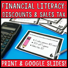 Discounts and Sales Tax Financial Literacy Task Cards: Digital and Print