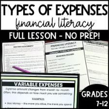 Financial Literacy – Types of Expenses – Complete Lesson Bundle – Middle or High